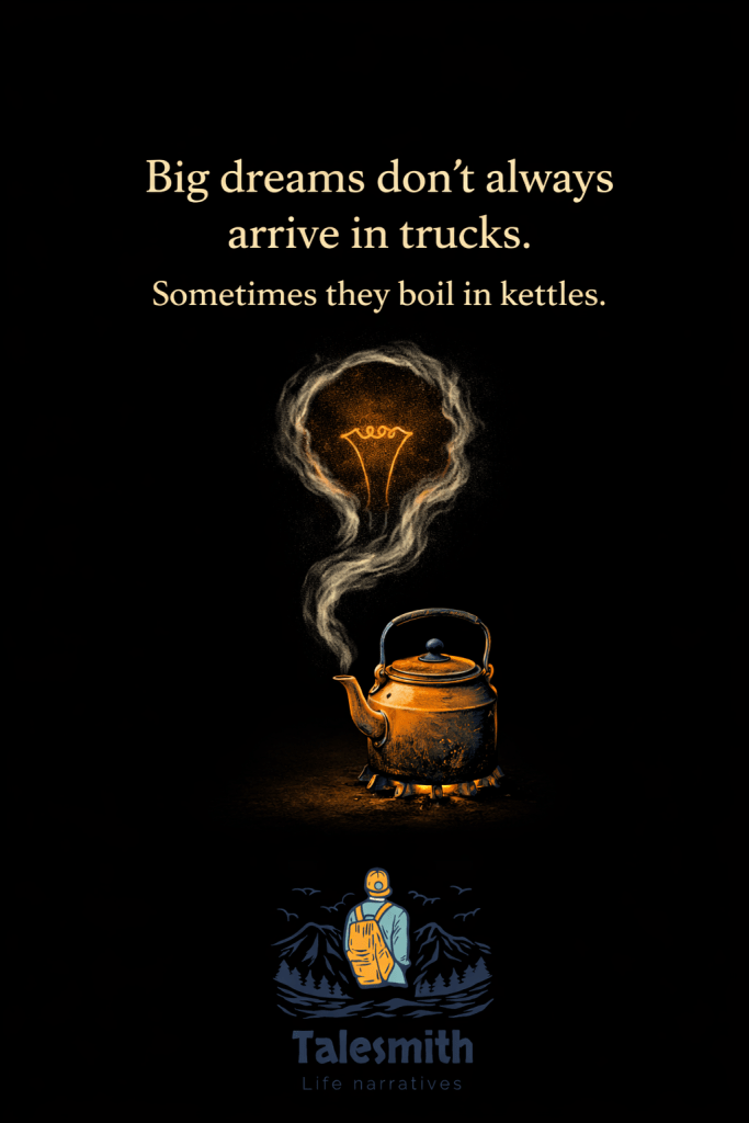 The kettle never replied. Meera’s stall was nothing special; just a crooked wooden counter, a faded blue umbrella, and a chalkboard that read: TEA. COFFEE. BISCUITS.